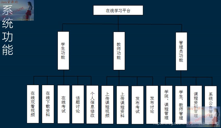 在线学习平台主要分为三大功能模块:系统管理员模块、教师模块和学生模块。如图2-1所示。