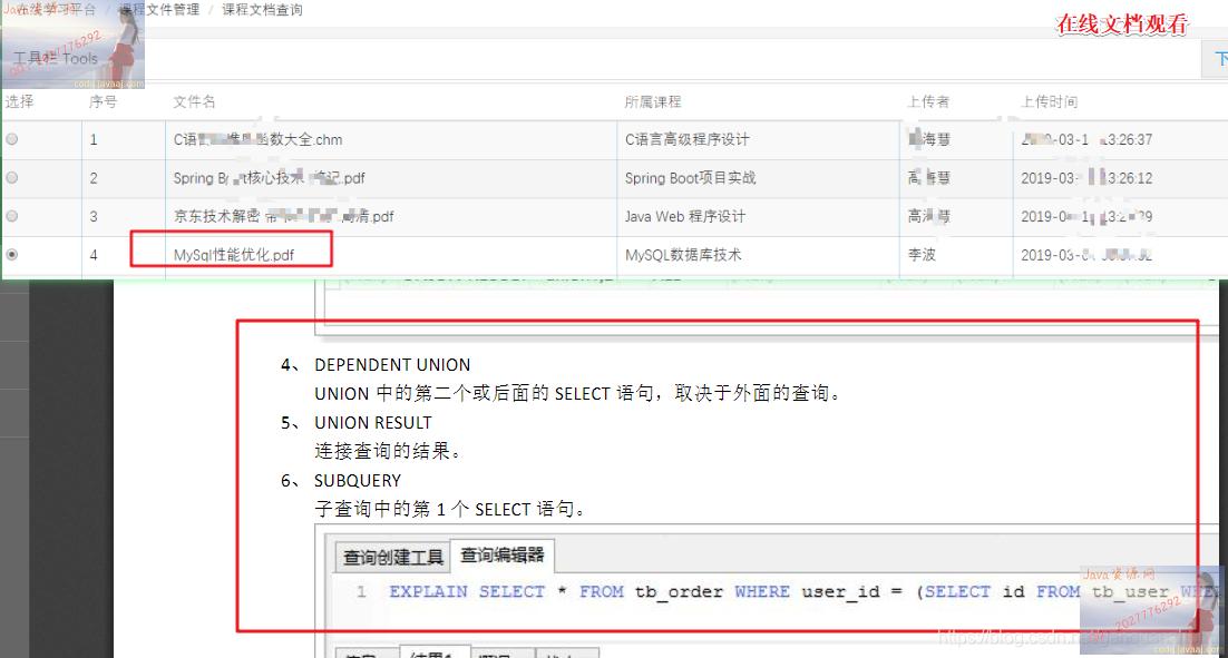 .除了文件名、所属课程和上传时间外,在1.处加上一个“发布教师”